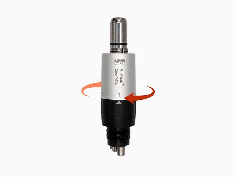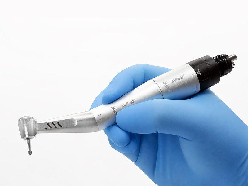 The AirPeak Air Motor boasts a reduction in length and weight by about 30% compared to its predecessors. This significant improvement enhances its weight distribution, providing a handling experience akin to an air turbine. The metallic construction ensures excellent durability against scratches, wear and tear, and repeated autoclaving. Fits all attachments optic or non-optic with Universal “E” type connection.