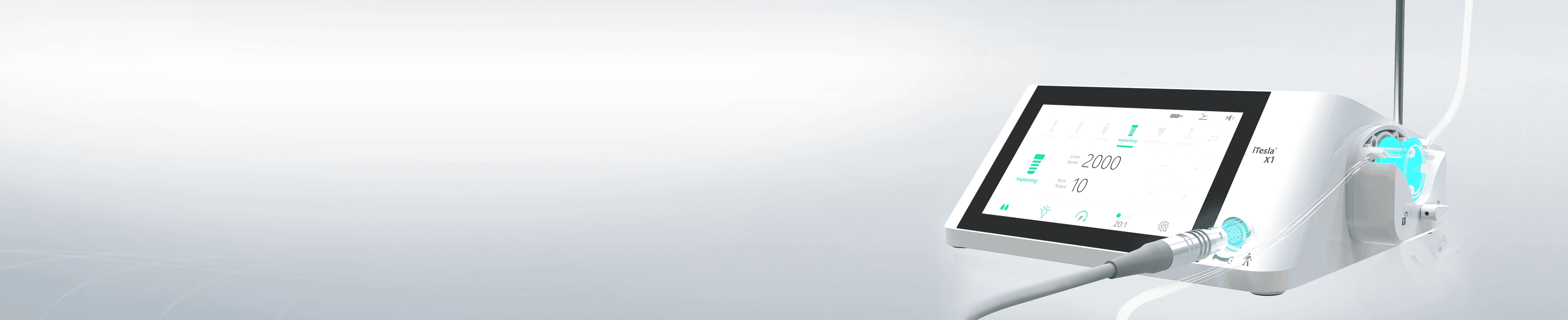 The advanced iTesla®X1 dental implant motor combines powerful brushless performance with dual implant and extraction modes for precision and versatility. Its intuitive touchscreen, smart foot control, and LED illumination ensure effortless operation, superior visibility, and optimal safety-delivering smooth, reliable, and efficient performance for modern dental surgical procedures.