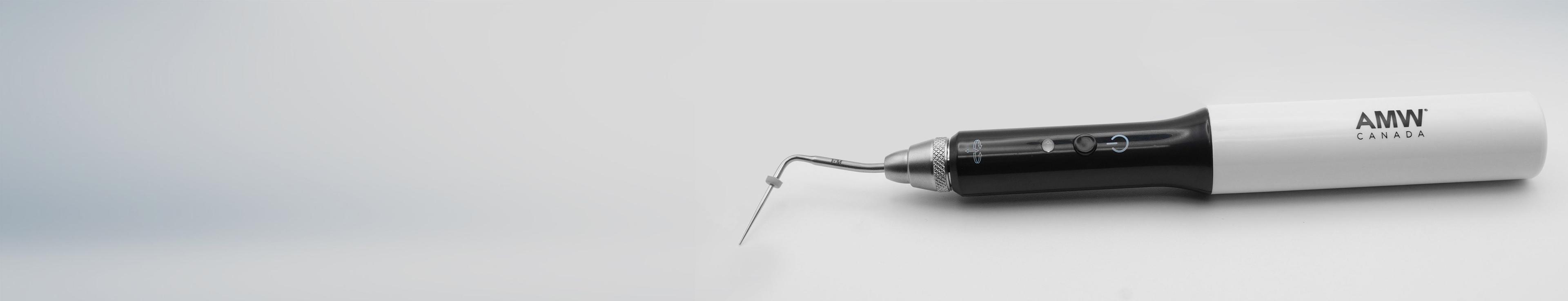 STRONIC™ Touch & Heat is a cordless heated endodontic pen equipped with two tips. Its Op-fill technology reaches 200 °C within 3 seconds, effectively melting all obturation materials and supporting precise vertical compaction for root canal filling.